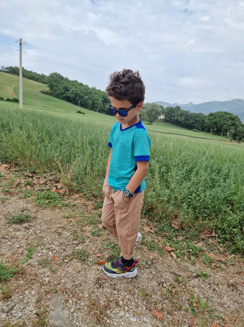 They quickly became his new favorite pants. The style is cute, but what won him over was that they’re so comfortable! He can even climb trees while wearing them, there’s a lot of freedom of movement.