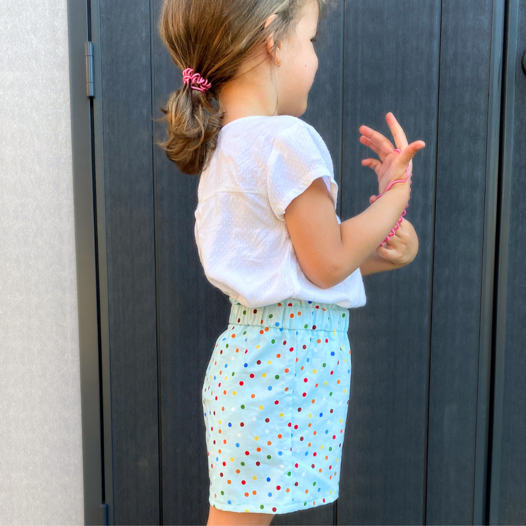 I decided to “hack” the pattern a little bit to suit my style – making them a bit longer, skipping the fiddly bias binding, and adding a trendy paper bag waistband. It’s a much faster sew, and my daughter is already obsessed with her new pair!